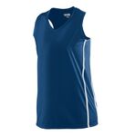 Keep the streak alive in the Ladies Winning Streak Racerback Jersey from Augusta Sportswear. Made with 100% polyester wicking smooth knit and v-neck collar, you can be sure to stay comfortable on the court.