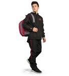 * 16 ounce per linear yard, 100% polyester double knit with 4-way stretch properties allow for increased mobility * Wicking stain release properties * Woven label * Mid rise, elastic waistband * Tunnel belt loops * Two-snap closure * Zipper fly * Two set-in double welt back pockets * Reinforced knees * Graded inseam * Elastic cuffs