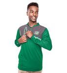 - Half-zip pullover style with zipper garage and collar