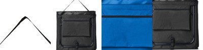 - Folds for easy carrying with handle, adjustable carry strap and hook and loop type fastener