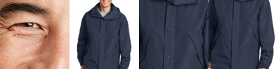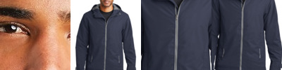 Our soft shell stands up to the elements and stands out with texture and bar tack details. Highly breathable and soft, this water resistant jacket is just right for the workday or the weekend. A hood and zippered sleeve vents add function and up-to-the-minute appeal.
