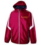 Micron(tm) polyester is a lightweight, wind/water resistant fabric * Embossed Micron blocking at hood, shoulders, and top sleeves with the Screenmesh pattern * Quilted, polyester, taffeta lining for added warmth * Woven label * Front zipper * Adjustable quilted hood with eyelets and concealed cord locks on Adult sizes only * Interior all access decoration zipper * Inside zippered pocket * Dual front zippered pockets * Half-elastic cuffs * Open bottom * Dropped tail * Water-resistant