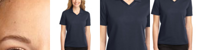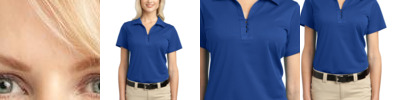 - 3.9-ounce, 100% polyester mini pique on body, 96/4 poly/spandex stretch mesh on back, side and shoulder panels