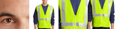 This safety vest combines reflective taping with a fluorescent body color for high visibility.