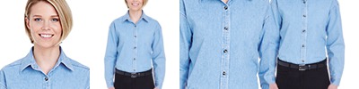 5.4 oz, 80/20 cotton/polyester blend; Ladies Silhouette ; 2 chest pockets with button flap; Roll Up Sleeve; Button cuffs;
