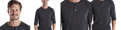US777 Unisex USA Made Three-Quarter Sleeve Triblend Raglan Henley