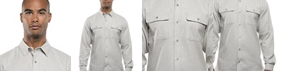 By mixing heather with a solid color and adding reflective hits, this moisture-wicking pullover has a technical look plus plenty of stretch for easy movement.