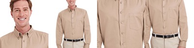 6.05 oz./yd² / 205 gsm, 100% cotton twill with Teflon™; Button-down collar with structured collar stand; DTM buttons; Two-button adjustable cuffs;