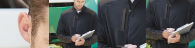 100% polyester inserts; 100% polyester textured stripe; 100% polyester Dry-Excel™; horizontal, textured stripe with high mechanical stretch; snag resistant technology; raglan sleeves for maximum mobility; self-fabric collar; three button placket;
